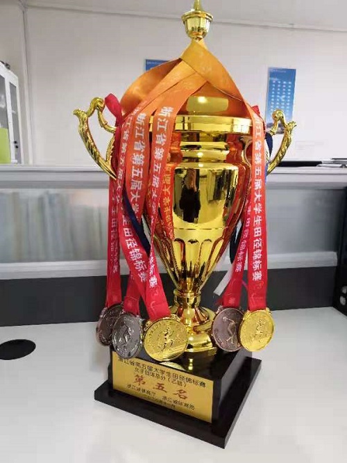 11月21日-11月26日,由浙江省教育厅、浙江省体育局主办的浙江省第五届大学生田径锦标赛在丽水市体育中心举行。我校田径队顽强拼搏,勇攀高峰,展现出了高超的竞技水平和良好的道德风尚,最终荣获2金1银2铜,1个第六、1个第八,以及女子团体第五名的优异成绩,其中两项破省大学生田径锦标赛纪录。同时,韩梦雪同学获体育道德风尚奖,王海霞老师被评为优秀教练员。