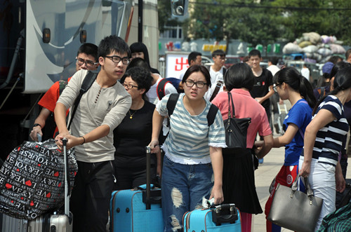 9点30分,第一班迎接新生的校车驶入校园,上午的迎新工作达到了高峰。今年有四千名新生被我校录取,加上前来送行的家长和亲人,将有一万余人涌入我校,预计有三千余辆小汽车,尽管有交管部门联合我校保安共同疏导,校门口的留和路还是被堵得车辆不通。