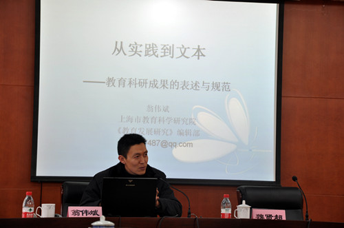 上海市教育科学研究院翁伟斌研究员作《从实践到文本——教育科研成果的表述与规范》专题报告