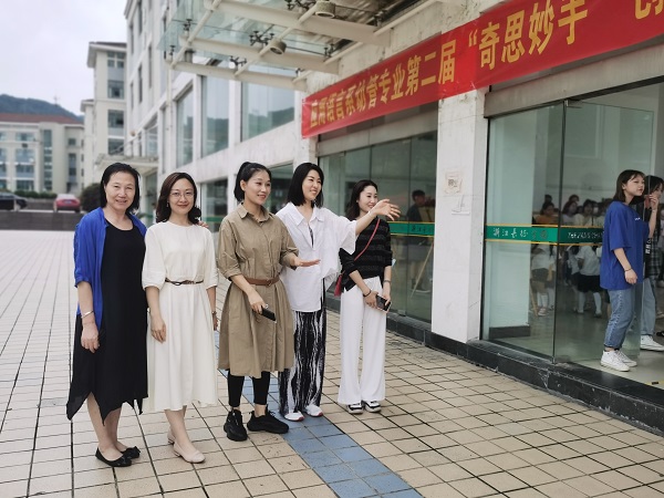 5月28日上午,应用语言系幼儿发展与健康管理专业的师生在行政楼玻璃房开展“奇思妙手”创意美术作品展,展示《幼儿美术与手工制作》的课程教学成果,杭州市余杭区白马幼儿园的刘慧园长等七位老师带领优优一班、优优二班两个大班小朋友们共50余人来我校观看交流,幼儿发展与健康管理专业教研室全体教师热情地接待了她们。