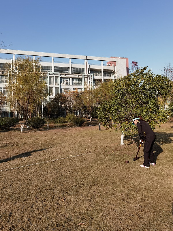 木球运动又称为“平民高尔夫”,主要考验运动员对地形的分析、把握以及心态的调节。我校代表队中有三位老师都是第一次参加木球赛事,但都心态平稳,表现优异。