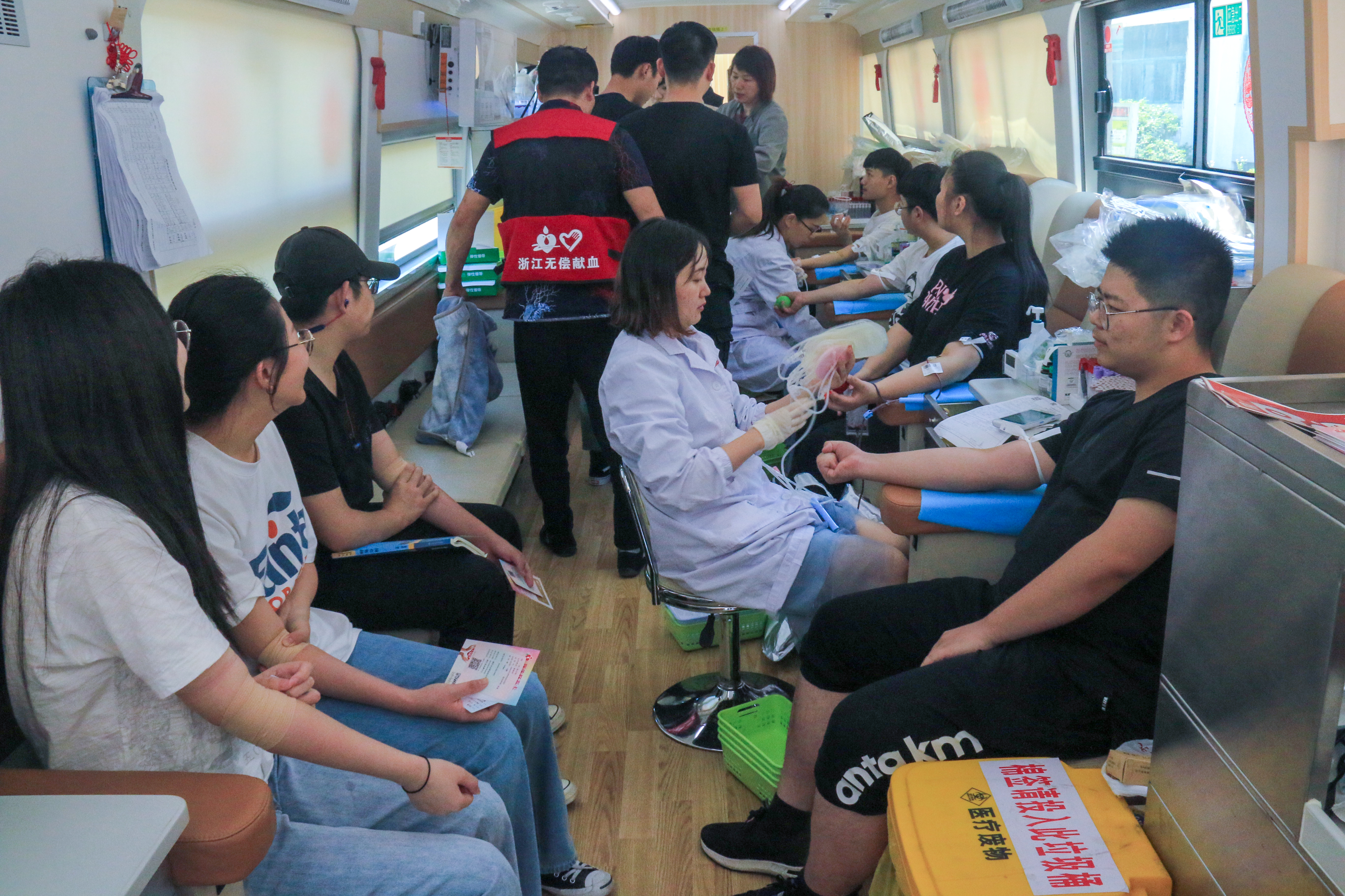早上十点半开始,活动现场前来献血的志愿者络绎不绝。浙江省血液中心工作人员有条不紊地对献血者进行体格检查、身体健康检查、血样采集、血型鉴定,对符合献血要求的人员进行血液采集。