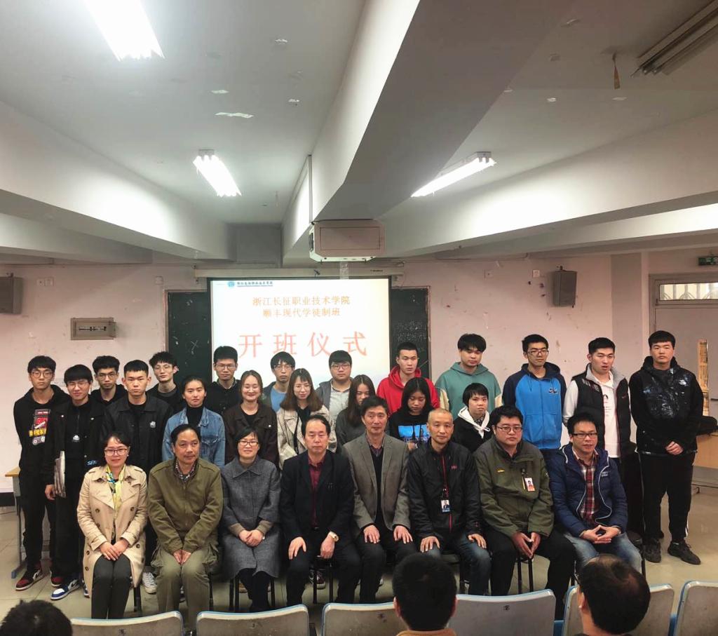 我校校企合作处处长张崇利、商务系主任李庆海、商务系书记过芹芹、浙江顺丰速运有限公司浙北区人力资源负责人金阳铭、浙江顺丰速运有限公司浙北区客服部负责人王翔出席此次开班仪式,合作企业代表、学院校企合作处苏若葵老师、商务系各位老师们及17物流、18物流专业的同学和商务系其他专业的学生代表参加了仪式。