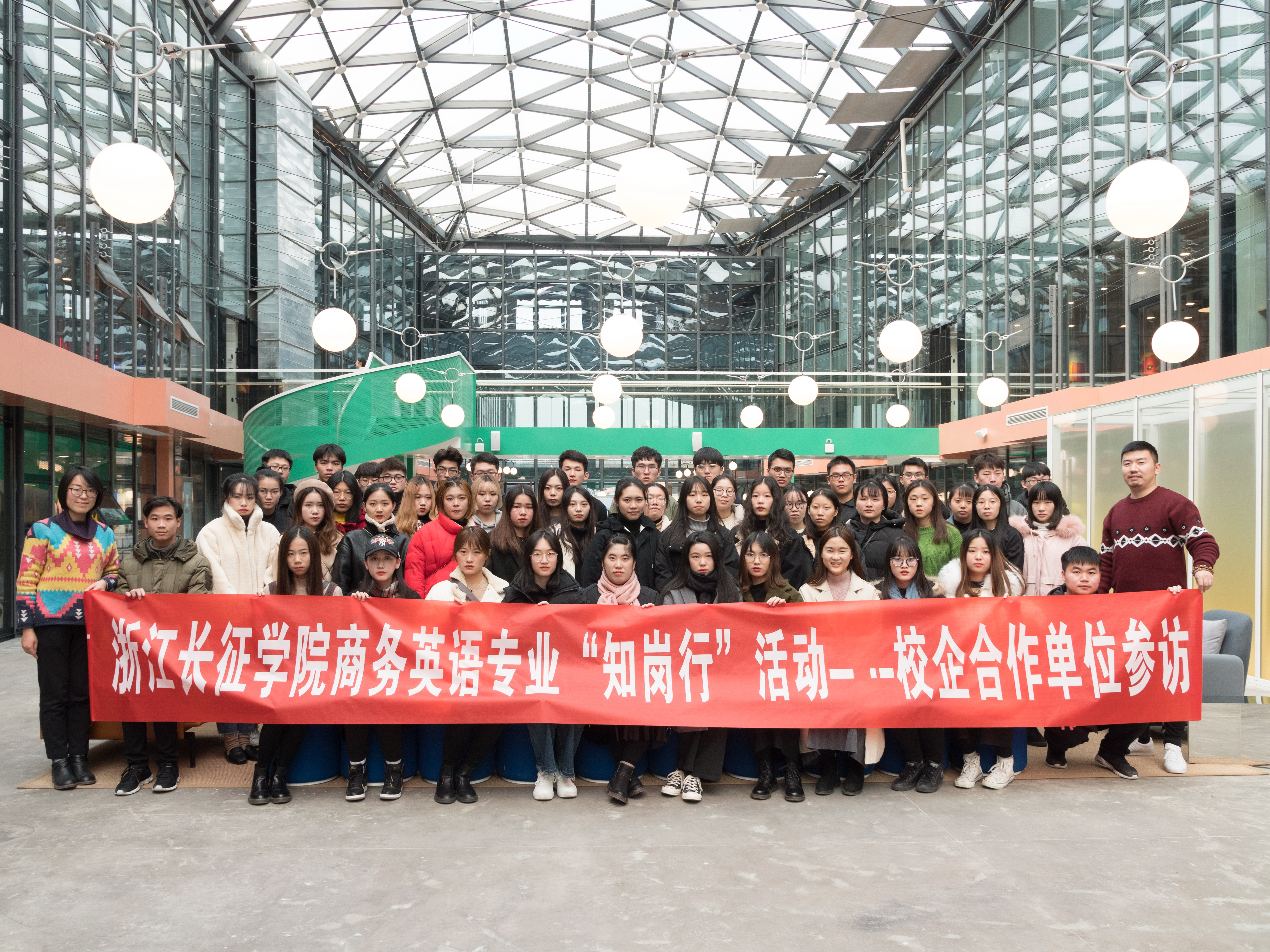 2018年12月12日应用语言系17商务英语专业的50名学生在金晶老师的带领下赴杭州任意门旅游传媒公司参加“知岗行”活动。