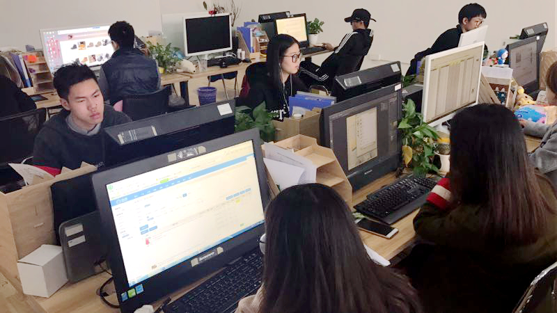 同学们在宁波邮政跨境电商示范园顶岗实习