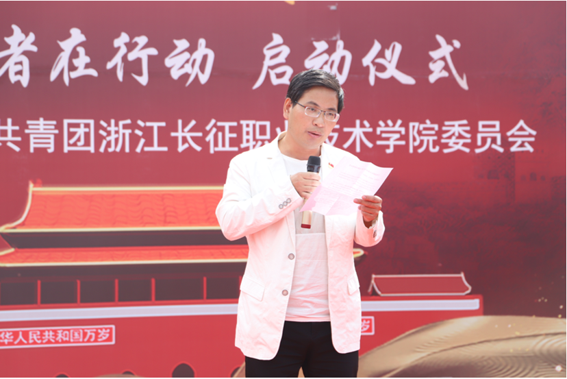学院副院长许迈进教授为启动仪式致辞。他高度肯定团委举办这样一个启动仪式非常有意义。许迈进说,我校志愿者服务工作有优良传统和漂亮的成绩,今天举行“向祖国献礼、志愿者在行动”活动启动仪式,是志愿精神的再弘扬,志愿行动的再出发。他鼓励广大青年志愿者积极参加志愿服务,在实实在在的志愿行动中收获光荣之感、快乐之情、成长之果;祝“向祖国献礼、志愿者在行动”活动启动仪式圆满成功,我校志愿者行动人气旺旺,收获满满,捷报连连!